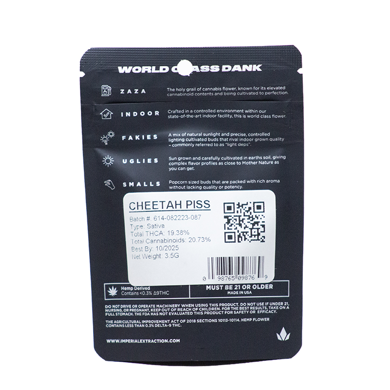Every batch is backed by full-panel third-party lab testing, ensuring transparency and purity in every purchase. Carefully handled and packaged in their signature discreet black containers, Imperial flower looks as refined as it performs.